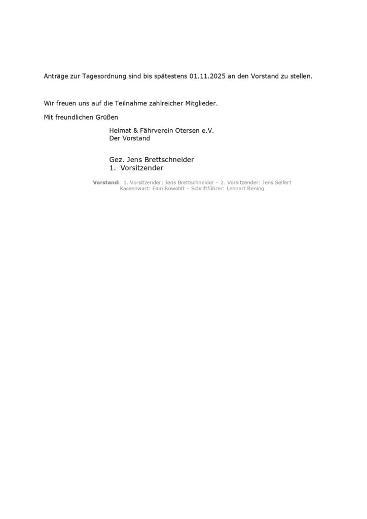 Die nächste Ortschaftsversammlung findet am Montag, den 27. Oktober um 19:30 Uhr im Feuerwehrhaus in Otersen statt. Neben den aktuellen Themen aus der Gemeinde, über die Bürgermeister Arne Jacobs berichten wird, stehen die Themen der Ortschaft im Mittelpunkt: Unter anderem geht es um die Themen Windpark Plaggenmoor, zukunftsfähiges Wohnen in der Ortschaft, den Bürgerbus Kirchlinteln, Realverband; innerörtliche Wege und Straßen – Abgaben an die Gemeinde, die Allervielfalt Otersen und besucherlenkende Maßnahmen, Schwerlastverkehr in der Oterser Marsch und im Bruch und den Planungsstand des Dorfgemeinschaftshauses.