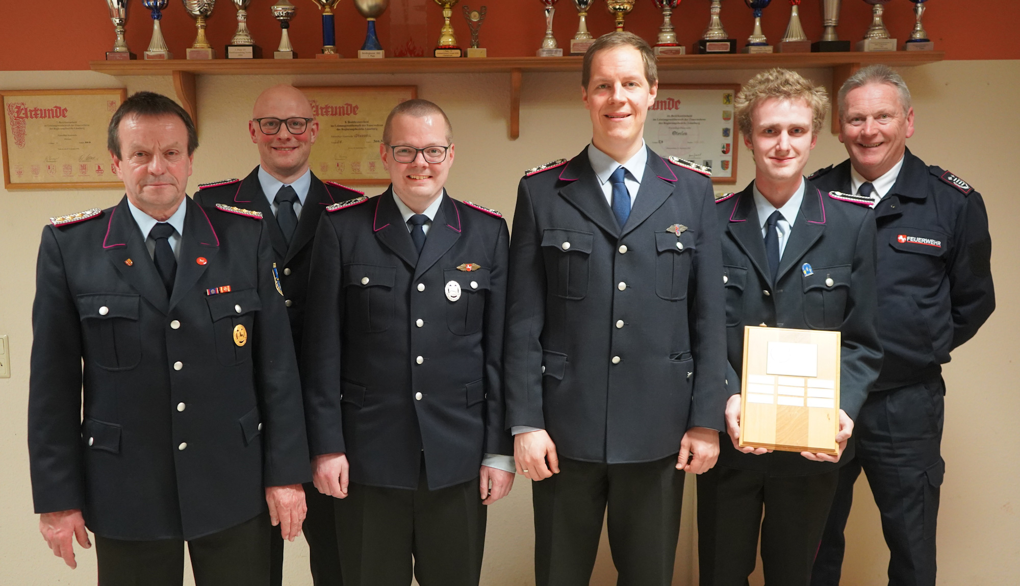 Ein besonderer Höhepunkt der Versammlung waren die Ehrungen. Für jeweils 25 Jahre Mitgliedschaft in der Feuerwehr wurden Patrick Marquardt und Sven Priemke ausgezeichnet. Nach 54 Jahren aktiver Mitgliedschaft wurde Dieter Bergstedt in die Altersabteilung entlassen. Für die beste Dienstbeteiligung im Jahr 2025 wurde Lukas Dehn als „Feuerwehrmann des Jahres“ geehrt. Mit 126,23 geleisteten Stunden nahm er an sämtlichen Diensten, Veranstaltungen, Wettbewerben und Arbeitsdiensten teil.