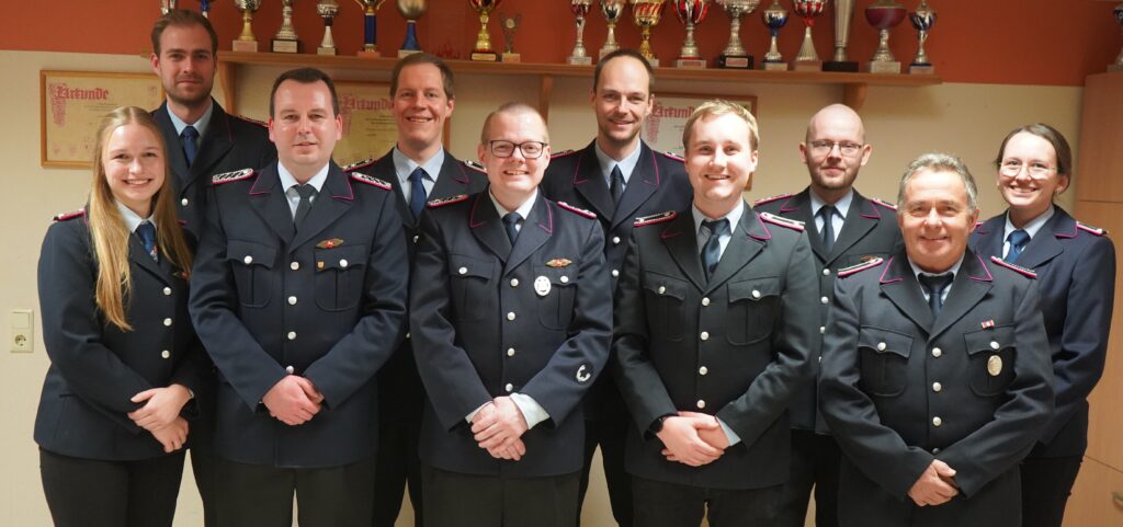 Im Rahmen der turnusmäßigen Wahlen wurden Christoph Dirk als Gerätebeauftragter, Jessica Brettschneider als Schriftführerin sowie Armin Rowohlt als Sicherheitsbeauftragter in ihren Ämtern bestätigt. Felix Hestermann wurde zum neuen Gruppenführer gewählt und tritt damit die Nachfolge von Mirko Dehn an, der nach 20 Jahren aus dem Ortskommando verabschiedet wurde. Die Funktion der Atemschutzbeauftragten übernimmt künftig Eileen Müller.