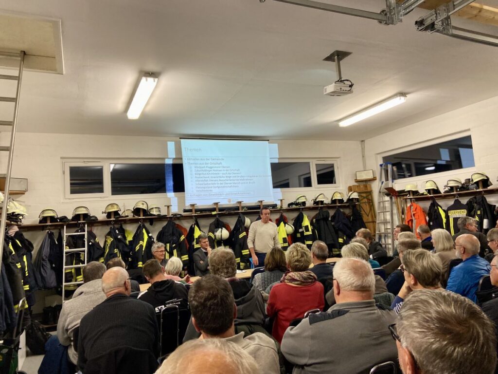 Am Montag fand die mit gut 70 Personen gut besuchte Ortschaftsversammlung im Feuerwehrhaus statt. Die von Bürgermeister Arne Jacobs gezeigte Präsentation veröffentlichen wir an dieser Stelle zur Info für alle.